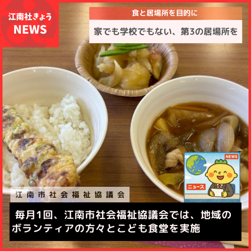 江南市社会福祉協議会では令和6年12月より、居場所と食の提供を目指す「社協こども食堂」を開催しています。この取り組みには多くの方の協力により成り立っており、住民や企業の方々からの寄付や小学生から大人までのボランティア協力者の方、居場所支えていただいている「こうなん子ども応援団ぽっけ」「東海つばめ学習会」の皆さんにより居場所を運営しております。
