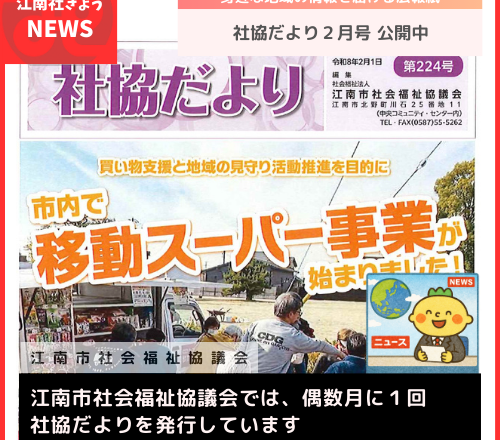 社協だよりとは 社会福祉協議会の事業等を市民に周知し、ふくしへの理解と関心を高めることを目的として、年に6回(2月、4月、6月、8月、10月、12月...