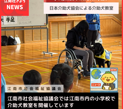 江南市社会福祉協議会では「日本介助犬協会 介助犬総合訓練センター ~シンシアの丘~」にご協力いただき市内の小学校に対して、介助犬や補助犬、誰もが安心...
