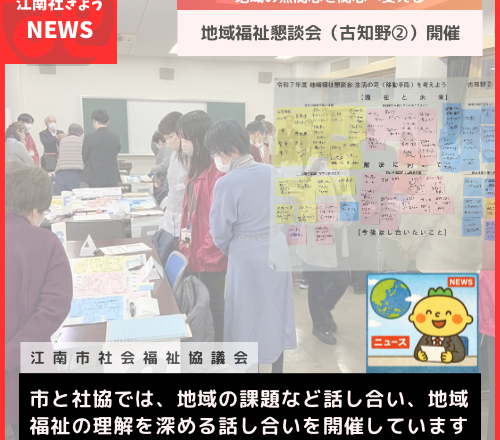江南市と江南市社会福祉協議会では住民と地域の課題などを話し合い、地域福祉の理解を深める話し合い「地域福祉懇談会」を開催しています。今回は1月20日(...
