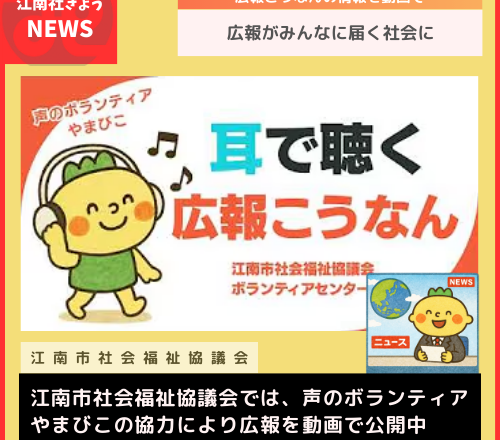 江南市社会福祉協議会の登録ボランティアグループ「声のボランティアやまびこ」は広報こうなんや社協だよりを読んでいる声を録音・編集、CDやデータにして視...